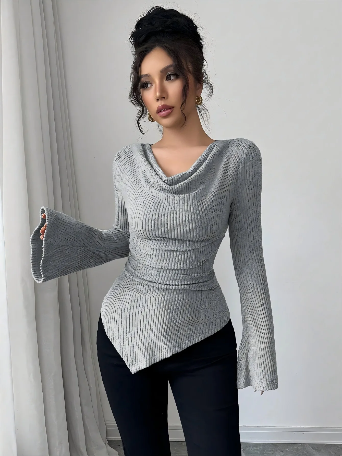 2025 autumn and winter women’s pit stripe base shirt, off shoulder slim fit knitted long sleeved top, hot selling commuting styl