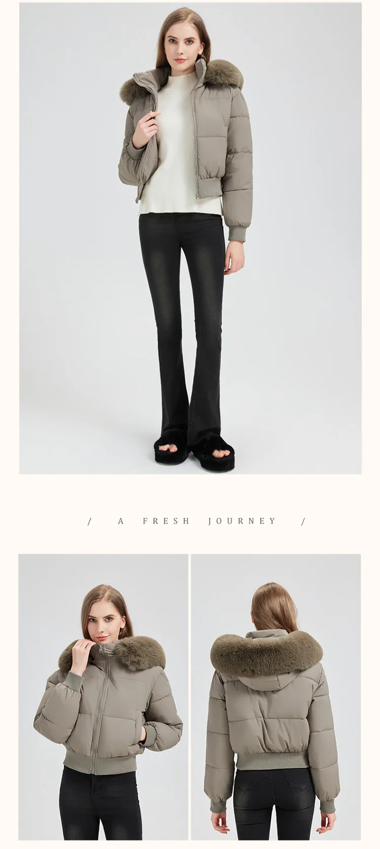 2025 Thicken Short Women’s Winter Jacket Korean Style Down Cotton Coat Casual Warm Fur Hooded Cropped Parkas Chic Streetwear