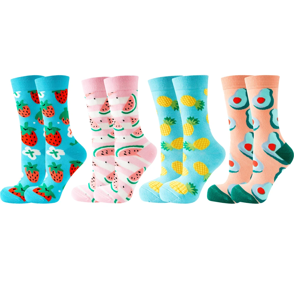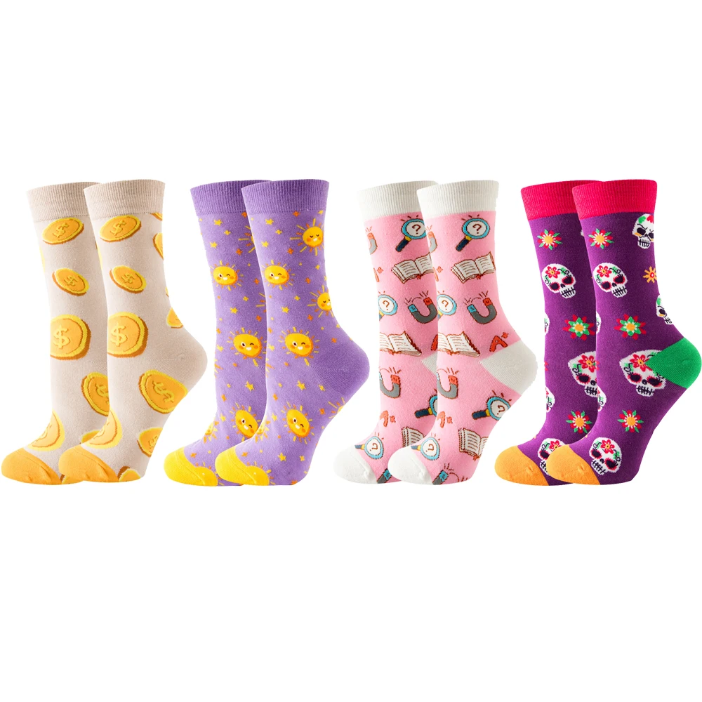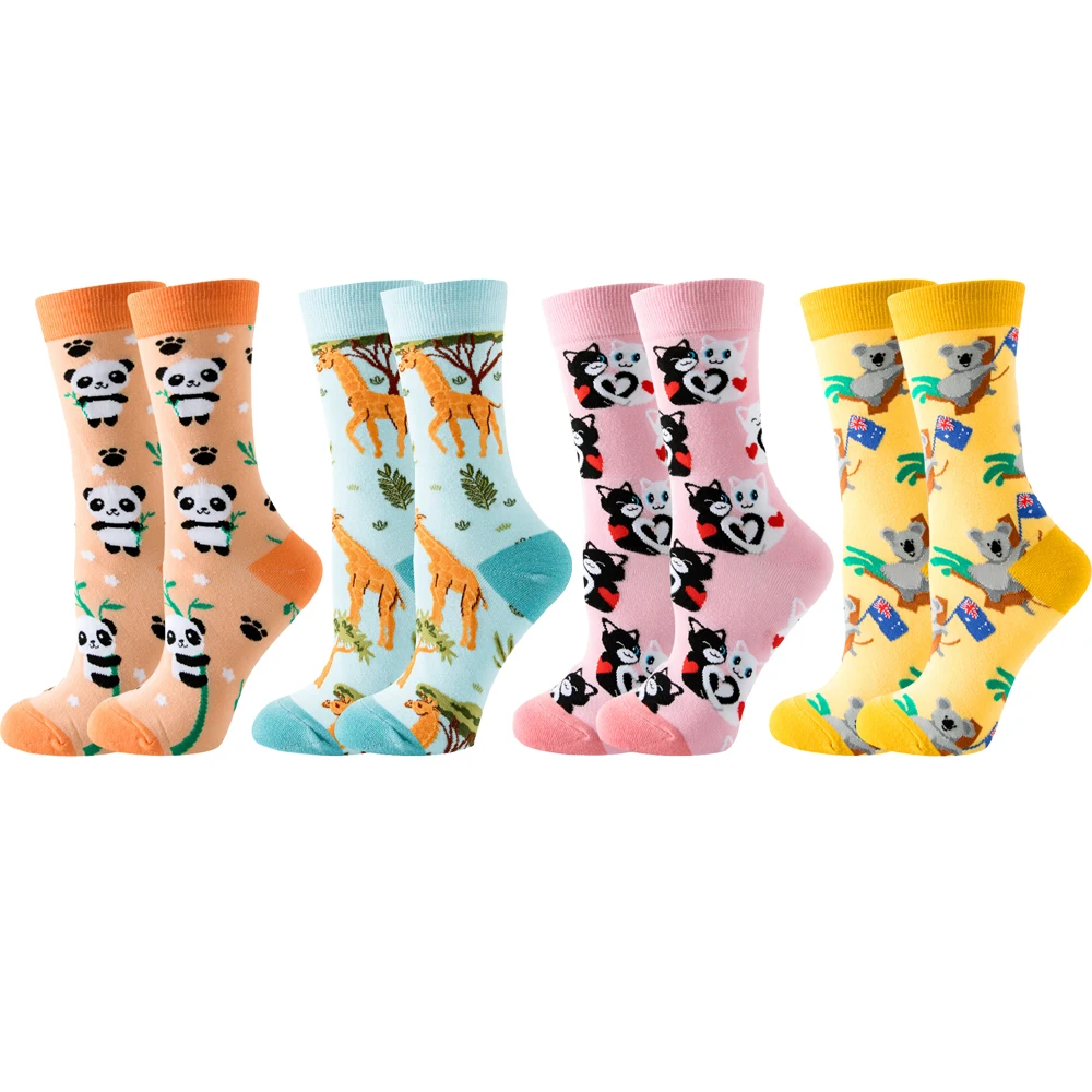 4 Pairs New Fashion Colorful Funny Happy Casual Women Socks Dress Harajuku Cute Cartoon Cat Dog Lemon Donut Girl Cotton Socks