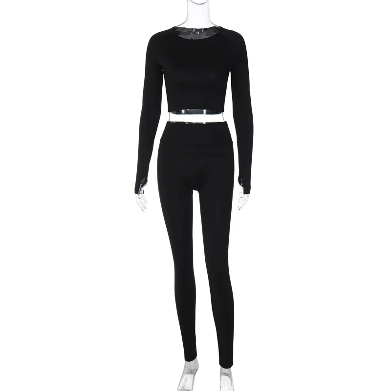Hawthaw Women 2024 Spring Autumn Long Sleeve Crop Tops Long Pants Two Piece Matching Sets Tracksuit Wholesale Items S3613114K