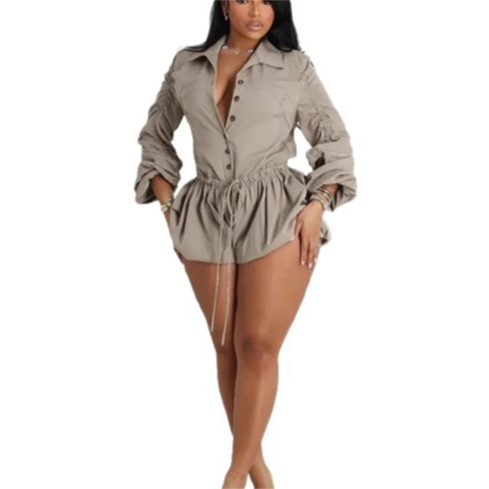 Nibber Single-Breasted Playsuits Women Folds Lace-Up Long Sleeves Solid Sexy Fit Elegant Temperament Daily Summer Trend Outfits