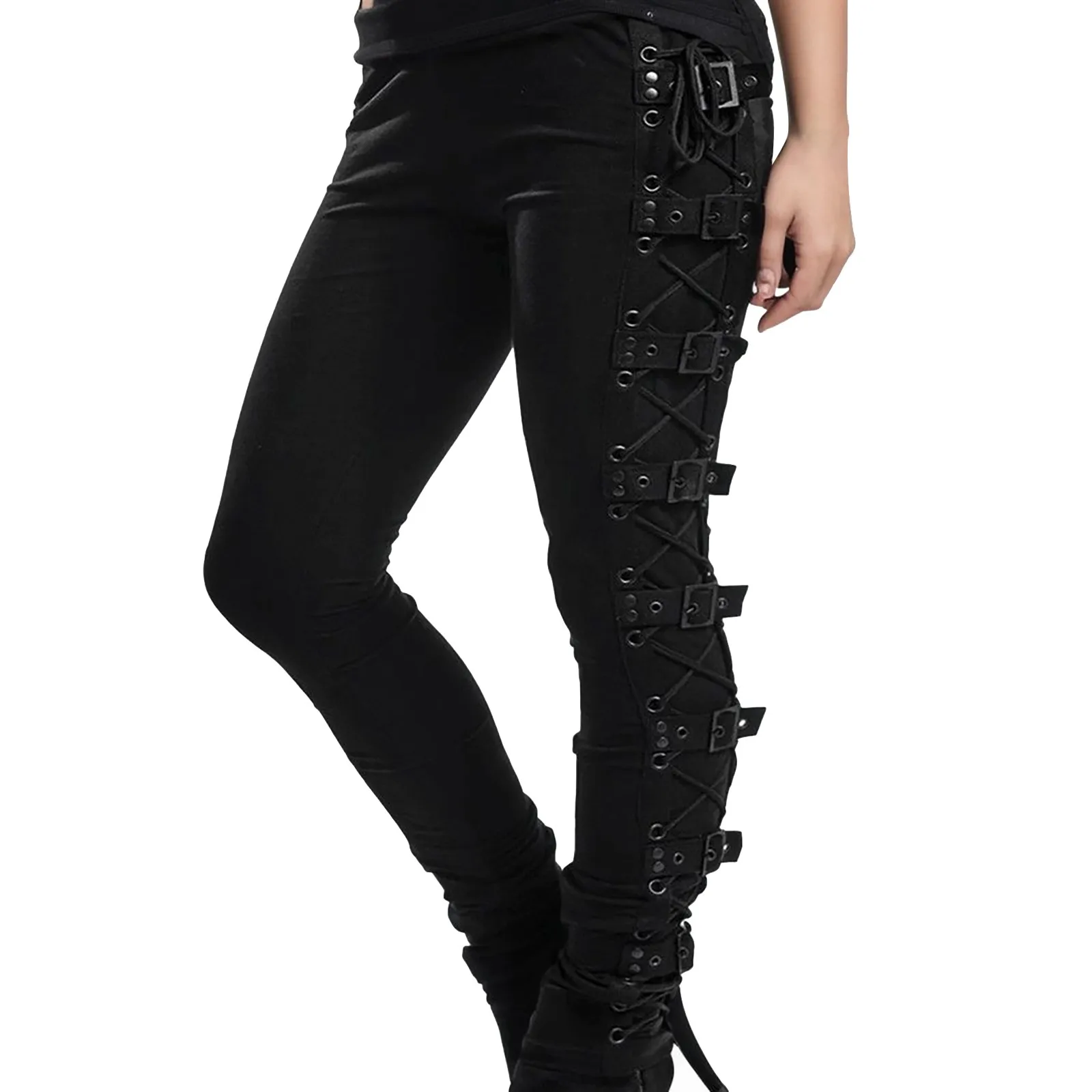 Fashion Lace Gothic Side Pans Trousers Leggings Up Women Lady Black Pants