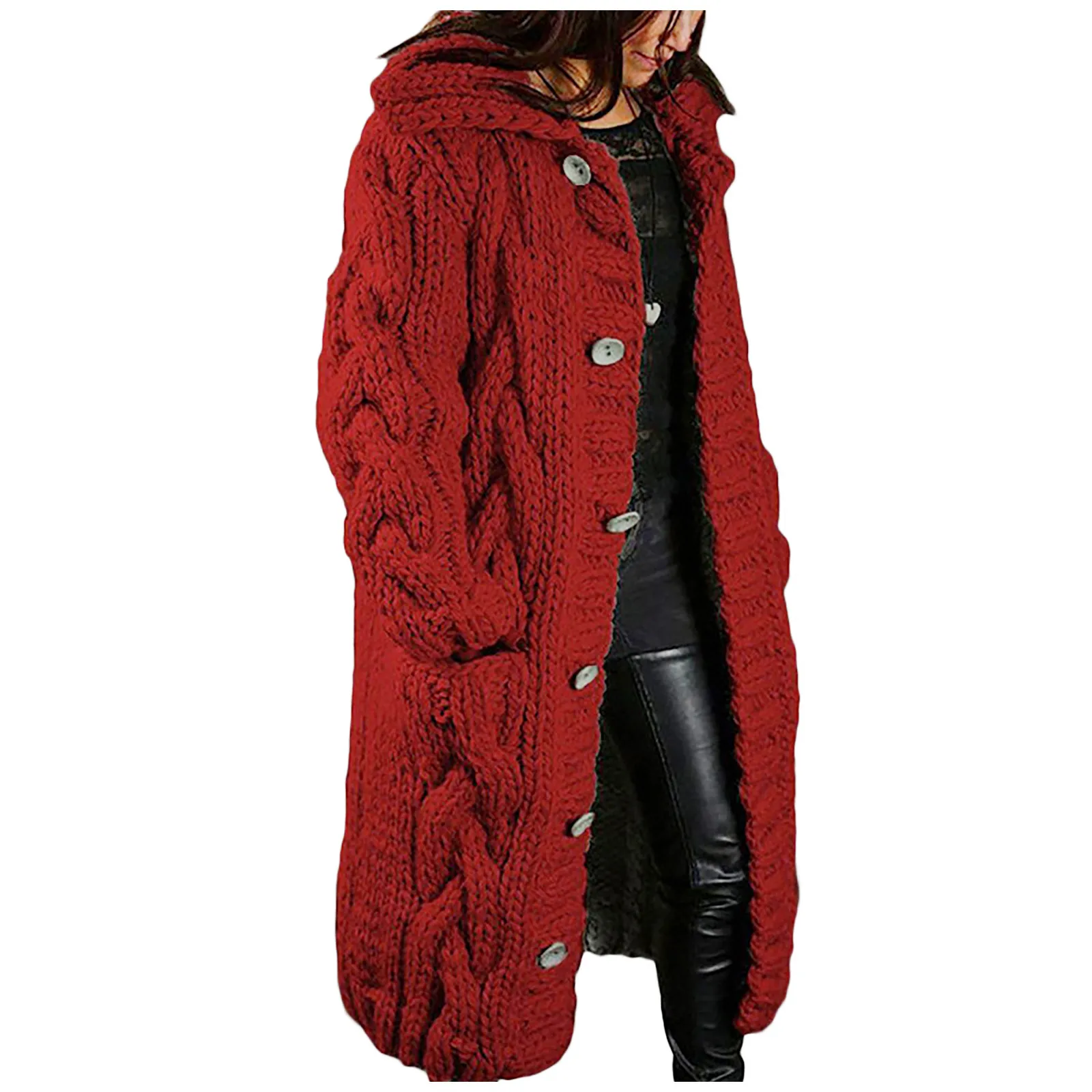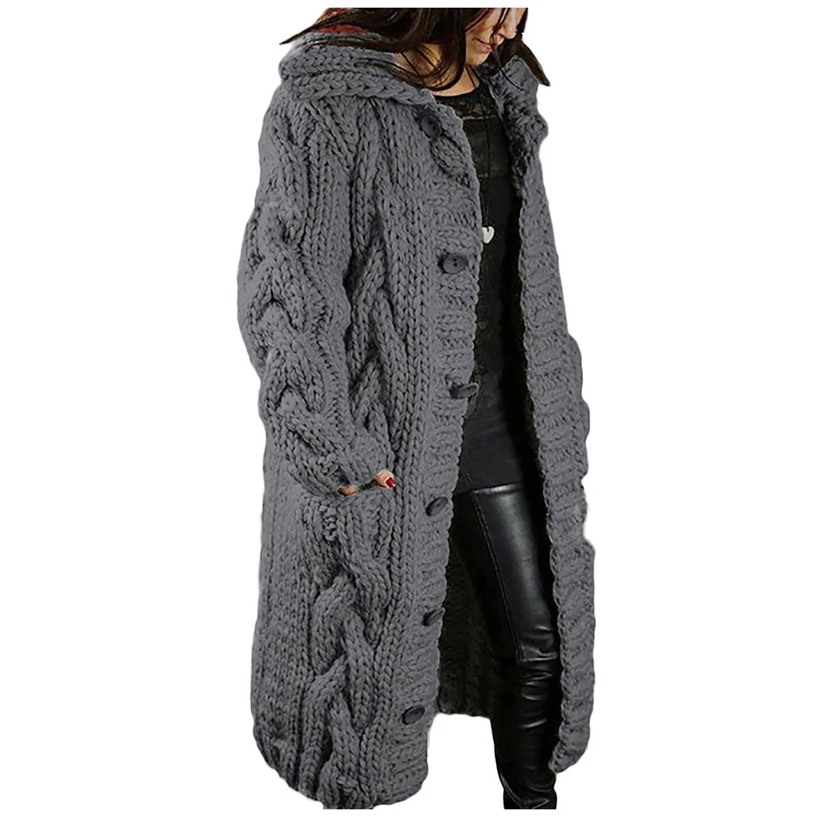Women Hood Cardigan Large Size Sweater Pocket Single Breasted Long Sleeves Coat