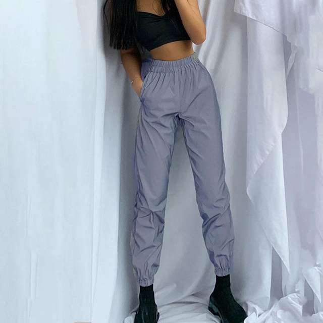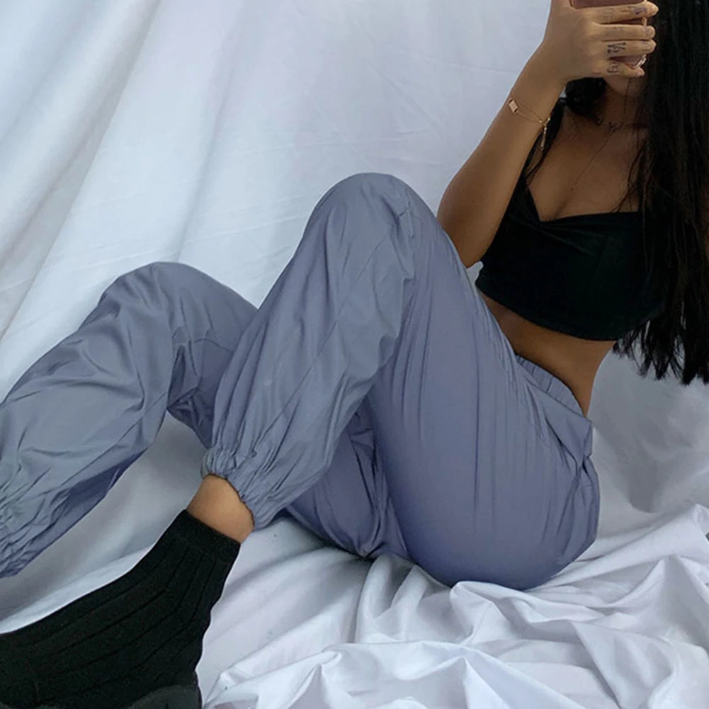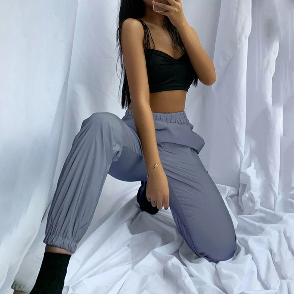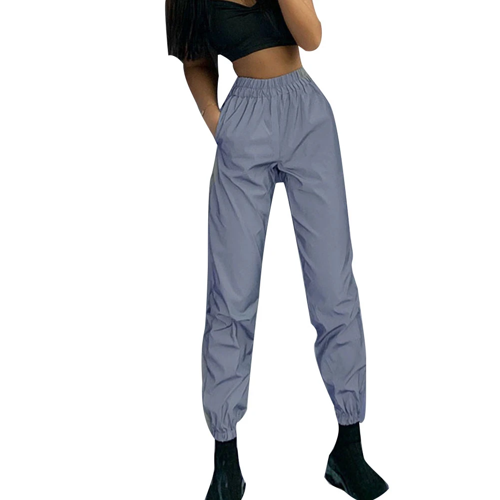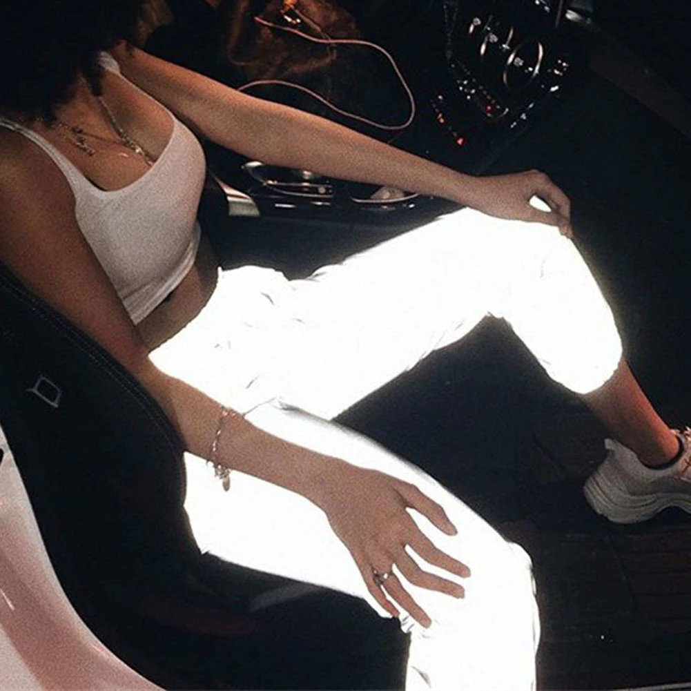 Women Sweatpant flash Reflective Pants Hight Waist Joggers Hip Hop Dance Show Party Night Jogger Baggy Trousers 3XL odblaskowe